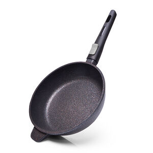 Главная особенность серии и гордость бренда FISSMAN - сверхпрочное многослойное антипригарное покрытие TouchStone собственной разработки. • TouchStone - покрытие, которое выбирают профессиональные повара. • Поверхность покрытия гладкая, с золотыми и серебряными вкраплениями. Посуда эффектно смотрится и способна стать украшением любой кухни. • За счет гладкой поверхности хорошо и быстро готовятся как мясные, так и овощные блюда, изделия легко чистятся. • Покрытие TouchStone устойчиво к коррозии и истиранию. Точки разных цветов отвечают за устойчивость к разным видам воздействия, а это значит, что производитель использует слои, защищающие от разных типов повреждений. • Глубокая форма позволяет готовить на всю семью, экономя время, силы и электроэнергию. Уникальная рельефная внутренняя поверхность дна в виде сот позволяет готовить с малым количеством масла. • Подходит для всех типов плит, включая индукционную. • Серия PROMO представлена изделиями различной функциональности: ковши, сковороды классические и глубокие, блинные, а также вок.