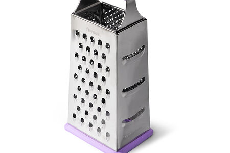 Терка четырехсторонняя 24,5 см изготовлена из нержавеющей стали. Очень удобная, многофункциональная четырехсторонняя терка имеет стороны для натирания пюре, крупной и мелкой соломки, ломтиков. Лезвия выполнены из высококачественной нержавеющей стали и прослужат вам долгие годы.