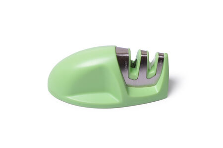 Точилка для ножей двухшаговой заточки. Двухступенчатая система для грубой заточки лезвия и окончательной шлифовки камнями из карбида и керамики сделает нож идеально острым. Фиксированный угол наклона камней обеспечивает равномерную заточку. Эргономичный дизайн и компактная форма точилки позволят ей всегда быть у вас под рукой: дома, на даче, на пикнике. Нескользящая основа гарантирует устойчивость точила при использовании. Рекомендуется очищать его вручную после каждого использования тканевым полотенцем или мягкой щеткой. Не предназначено для заточки серрейторных (зубчатых) и керамических лезвий.