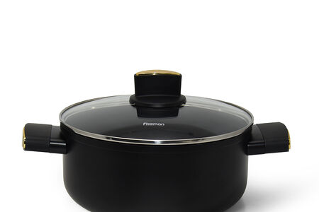 Главная особенность серии PAULA и гордость бренда FISSMAN – новейшее сверхпрочное многослойное антипригарное покрытие TouchStone собственной разработки. • TouchStone - покрытие, которое выбирают профессиональные повара. • За счет гладкой поверхности хорошо и быстро готовятся как мясные, так и овощные блюда, изделия легко чистятся. • Бакелитовые ручки с эффектом soft-touch и золотыми вставками, приятны на ощупь, не скользят в руках, не нагреваются во время готовки. • Прозрачная стеклянная крышка с паровыпуском позволяет наблюдать за готовностью пищи, не открывая посуду, тем самым, исключая попадания брызг на кожу и одежду. • Подходят для всех типов плит, включая индукционную. • Серия PAULA представлена изделиями различной функциональности: сковороды классические, кастрюли, а также ковш.