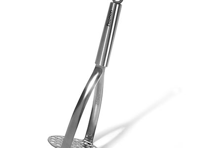 Прочная и долговечная толкушка ZONDA из нержавеющей стали от компании FISSMAN — это сочетание стильного, удобного дизайна и качественного материала. Толкушка станет приятным дополнением на Вашей кухне. • Надежность и долговечность - обладает коррозийной стойкостью • Универсальность - теперь Вам будет под силу приготовить великолепное пюре без комочков из картошки или любых других овощей • Крючок на ручке - удобное хранение • Устойчивость к загрязнению, легкость ухода • Безопасно для здоровья и окружающей среды • Одобрено профессионалами