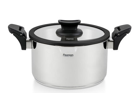 Компания FISSMAN постоянно совершенствует ассортимент своей продукции, стремясь облегчить жизнь современным поварам. Кастрюли серии LORA– новое достижение производителя. Уникальные и универсальные бакелитовые ручки, которые служат еще и прихваткой, удобно сливать лишнюю жидкость. Стеклянная крышка с силиконовым ободком, носики для слива, отверстия для слива — все это делает кастрюли серии LORA незаменимым помощником на вашей кухни. • Стальной корпус 18/10 (INOX304) (высококачественная нержавеющая сталь) • Многослойное капсульное индукционное дно (для всех типов плит, высокая теплопроводность) • Мерная шкала (для контроля количества жидкости) • Носики для слива (удобно сливать лишнюю жидкость) • Отверстия для слива • Прозрачная ударопрочная стеклянная крышка с паровыпуском позволяет наблюдать за готовностью пищи, не открывая посуду, тем самым, исключая попадания брызг на кожу и одежду • Одобрено профессионалами • Безопасно для здоровья и окружающей среды