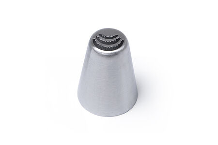 Насадка на кондитерский мешок. Изготовлена из нержавеющей стали, используется для украшения кондитерских изделий. Удобна в применении, не деформируется. Опытный вы кондитер или начинающий, для создания красивых кулинарных узоров без специального инвентаря точно не обойтись. Можно мыть в посудомоечной машине.