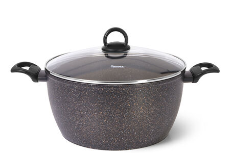 Главная особенность серии MAGNA и гордость бренда FISSMAN - сверхпрочное многослойное антипригарное покрытие TouchStone собственной разработки. • TouchStone - покрытие, которое выбирают профессиональные повара. • Покрытие TouchStone устойчиво к коррозии и истиранию. Точки разных цветов отвечают за устойчивость к разным видам воздействия, а это значит, что производитель использует слои, защищающие от разных типов повреждений. • Большие и вместительные кастрюли серии MAGNA позволяют готовить на всю семью, экономя время, силы и электроэнергию. • Подходят для приготовления различных супов, жаркого, рагу, гуляша, а также блюд национальной кухни, таких как плов, чахохбили, шурпа, лагман, басма и многих других. • Стеклянная крышка с паровыпуском позволяет наблюдать за готовностью пищи, не открывая посуду, тем самым, исключая попадания брызг на кожу и одежду. • Ручки изготовлены из бакелита – не нагреваются, не скользят. • Подходят для всех типов плит, включая индукционную.
