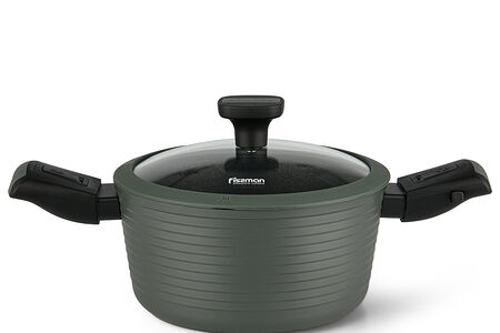 Компания FISSMAN - признанный лидер в производстве кухонной утвари - представляет новую эксклюзивную серию посуды BRILLIANT, главным преимуществом которой является профессиональное антипригарное покрытие XylanPlus (USA, www.whitfordww.com). • Профессиональное покрытие XylanPlus содержит керамические частицы, которые усиливают антипригарные свойства и обеспечивают надежную защиту от механического истирания. • Посуда серии BRILLIANT отвечает международным экологическим стандартам, имеет соответствующие сертификаты безопасности. При производстве посуды компания FISSMAN не применяет PFOA, токсичные, канцерогенные компоненты. • Благодаря съемным бакелитовым ручкам посуду BRILLIANT можно использовать для запекания в духовке. Изделия удобно хранить в разобранном виде. • Дизайн продуман до мелочей: уникальный серо-оливковый цвет снаружи, оригинальная внешняя поверхность с объемным графическим рисунком, а также съемные стильные бакелитовые ручки с силиконовыми вставками удовлетворят потребности самых изысканных и современных покупателей. • Стеклянная крышка с силиконовым ободком плотно прилегает, не скользя и не царапая покрытие, позволяет наблюдать за готовностью пищи, не открывая посуду, тем самым исключая попадания брызг на кожу и одежду. • Серия BRILLIANT --это широкий модельный ряд посуды для приготовления различных видов блюд: сковороды глубокие, ковши, кастрюли. • Индукционное дно посуды серии BRILLIANT быстро и равномерно нагревается до нужной температуры. Посуда серии BRILLIANT подходит для всех типов плит.