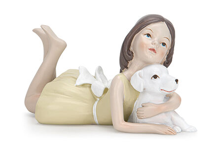 Статуэтка “Девочка с собакой” – это трогательное изображение искренней дружбы между ребенком и домашним животным. На этой статуэтке девочка лежит на животе, нежно обнимая своего маленького друга – щенка. Эта поза подчеркивает их близость и привязанность друг к другу. Статуэтка станет отличным сувениром для тех, кто ценит дружбу и любовь между людьми и животными.