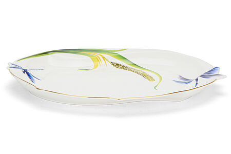 Сервировочное блюдо от FISSMAN серии Dragon Fly создано для эффектной подачи на стол различных закусок, блюд из мяса, рыбы, фруктов или овощей. Выполненное из фарфора, с волнистыми краями и выбитым рисунком, оно может послужить в качестве отличного подарка, а также для украшения интерьера вашего дома. Посуда серии Dragon Fly еще и очень практична - ее можно мыть в посудомоечной машине и использовать в микроволновой печи. Берегите посуду от падений и используйте жидкие моющие средства.