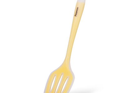 Яркая и стильная лопатка с прорезями AQUARELLE от компании FISSMAN обладает неоспоримыми преимуществами: • Термостойкость - выдерживает нагрев до 230°С • 100% пищевой силикон, не токсично, не имеет запаха • Универсальность - подойдет не только для перемешивания и переворачивания продуктов в процессе жарки или тушения, давая стечь жидкости и жиру, но и для подачи готовых блюд • Практична в использовании, не повреждает и не царапает поверхность посуды • Нейлоновый стержень внутри изделия – особая прочность и сохранение формы • Прозрачное силиконовое покрытие снаружи придает изделию оригинальный вид • Отверстие на ручке - удобное хранение • Устойчивость к загрязнению, легкость ухода • Безопасно для здоровья и окружающей среды