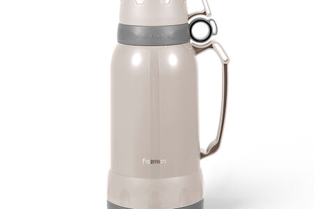 Высокая гигиеничность обеспечивается благодаря легко моющейся стеклянной колбе и съемному дну. Также термос оборудован удобной ручкой для переноски и крышкой, которая трансформируется в две чашки для теплой компании.