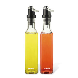 На кухне имеет значение каждая деталь – от этого зависит и порядок, и комфорт. Соус, масло или уксус – любую заправку удобнее наливать из специальной посуды. Для этих целей компания FISSMAN предлагает использовать набор из двух бутылочек для масла и уксуса с дозатором, который обладает рядом преимуществ: • Корпус бутылочек изготовлен из высококачественного стекла устойчивого к механическим повреждениям • Благодаря дозатору можно быстро налить необходимое количество масла или уксуса, а жидкость не будет течь по горлышку и оставлять пятна на поверхности • Крышка на дозаторе плотно прилегает и не дает растекаться жидкости при опрокидывании бутылочки, а также не пропускает воздух и предотвращает процесс окисления • Экологично – не впитывает запахи, сохраняет содержимое свежим надолго • Не вступает в химическую реакцию с продуктами и не выделяет вредных веществ • Безопасно для здоровья и окружающей среды