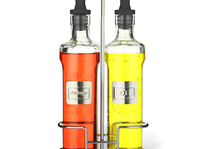 На кухне имеет значение каждая деталь – от этого зависит и порядок, и комфорт. Соус, масло или уксус – любую заправку удобнее наливать из специальной посуды. Для этих целей компания FISSMAN предлагает использовать набор из двух бутылочек для масла и уксуса с дозатором на подставке, который обладает рядом преимуществ: • Корпус изготовлен из высококачественного стекла устойчивого к механическим повреждениям, носик с крышкой из нержавеющей стали обладают коррозийной стойкостью • Благодаря дозатору можно быстро налить необходимое количество масла или уксуса, а жидкость не будет течь по горлышку и оставлять пятна на поверхностях • Изящная хромированная подставка удобна для переноски и сервировки стола • Экологично – не впитывает запахи, сохраняет содержимое свежим надолго • Не вступает в химическую реакцию с продуктами и не выделяет вредных веществ • Безопасно для здоровья и окружающей среды