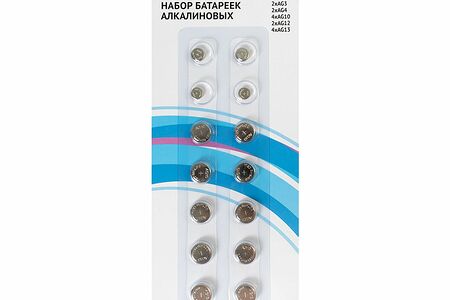 Набор алкалиновых батареек пригодится в каждом доме! В набор входят 14 батареек: 2хAG3, 2хAG4, 4хAG10, 2хAG12, 4хAG13. Перед применением ознакомьтесь с инструкцией и мерами предосторожности на упаковке.