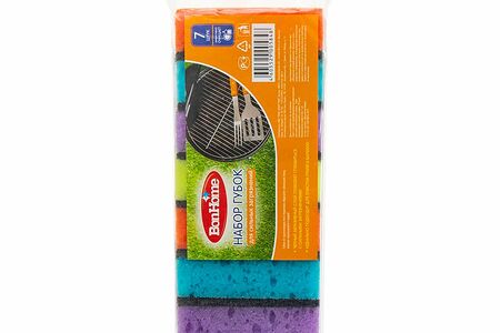 Набор губок для сильных загрязнений, BonHome, с чёрным абразивным слоем идеально подходит для очистки гриля и барбекю. Губки из крупнопористого поролона взбивают обильную пену и хорошо промываются водой. В упаковке 7 губок. Состав: поролон, абразивная фибра.