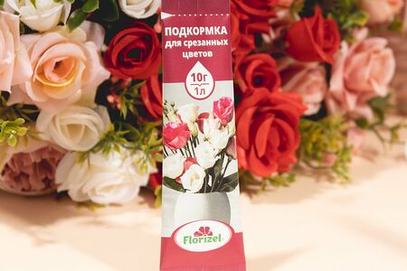 Подкормка для срезанных цветов, Florizel – это концентрированное средство, которое замедляет процесс увядания цветов. Помогает сохранить свежесть и аромат букета на долгое время. Перед использованием внимательно ознакомьтесь со способом применения и мерами предосторожности на упаковке. Масса нетто: 10 г = 1 л раствора.