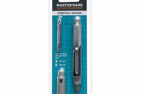 Отвёртка с битами, Master Hand – функциональный набор для точных работ! В комплект входят 2 двусторонние биты (SL3, SL4; PH0, PH1), отвёртка и колпачок. Отвёртка дополнена удобным зажимом для закрепления на кармане. Состав: АБС, термопластичная резина, хромованадиевая сталь. Товар представлен в ассортименте.