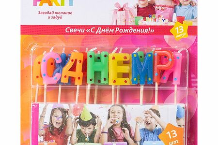 Праздничные свечи, Party, прекрасно подходят для украшения торта. С помощью разноцветных свечей в виде букв Вы сможете составить фразу "С днём рождения". Отличный способ порадовать и удивить именинника. В наборе 13 свечей. Состав: парафин, дерево.