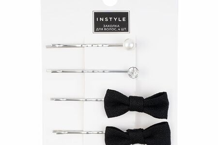Заколка для волос, INSTYLE – стильное дополнение к Вашему образу! В наборе 4 заколки-невидимки: 2 с бантиками и 2 с лаконичным декором. Состав: сталь, полиэстер, АБС. Товар представлен в ассортименте.