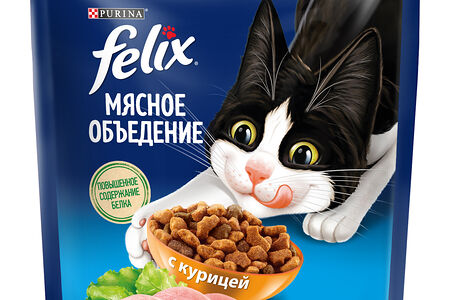 Сухой корм Felix Мясное объедение для взрослых кошек, с курицей 600 г доставка