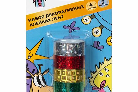 Набор декоративных клейких лент пригодится для скрапбукинга и упаковки подарков. Внутри 4 глянцевых ленты длиной 5 м. Состав: полипропиленовая плёнка, акриловый клеевой слой. Товар представлен в ассортименте.