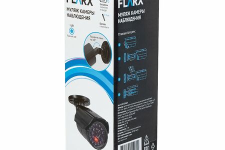 Муляж камеры наблюдения, FLARX, поможет создать убедительную имитацию видеонаблюдения в тёмное время суток. Оснащён красным диодом (1 LED), который автоматически загорается в темноте. Работает от 3 батареек типоразмера ААА, в комплект не входят. Крепится при помощи 3 монтажных шурупов 6х20 мм и 3 дюбелей, в комплекте. Перед использованием ознакомьтесь с инструкцией и мерами предосторожности на упаковке. Напряжение: 4,5 В. Мощность: 0,5 Вт. Световой поток: 3 Лм. Состав: АБС, полистирол, сталь, медь.