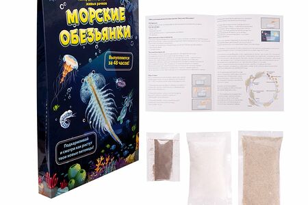 Набор для выращивания живых рачков "Морские Обезьянки" поможет ребёнку стать настоящим исследователем и наблюдать за одними из самых древних существ на Земле! В наборе: 100 г песка, 60 г морской соли, 2 г цист рачков артемии и подробная инструкция. Рачки вылупляются за 48 часов. Ребёнок сможет подкармливать необычных питомцев и смотреть, как они растут! Для детей от 6 лет. Рекомендуется играть под присмотром взрослых. Перед использованием внимательно ознакомьтесь с информацией на упаковке и в инструкции.