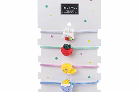 Резинка для волос, INSTYLE, с забавными фигурками поможет создать яркий весенний образ! В наборе 4 резинки. Состав: нейлон, резина, АБС, смола. Товар представлен в ассортименте. Бренд: INSTYLE
