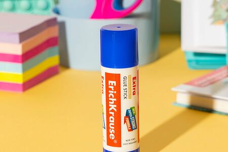 Клей-карандаш "Extra", Erich Krause, отлично подойдёт для склеивания бумаги, картона, фотографий и ткани. Имеет удобный выкручивающийся механизм. Клей быстро сохнет, не токсичен, смывается водой. Вес: 19 г. Состав: вода, крахмал, ПВП, глицерин, стеарат натрия. Бренд: ErichKrause