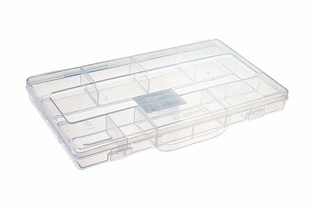 Универсальная коробка для мелочей, ARXИМЕD, подойдёт для хранения украшений, аксессуаров для хобби, метизов. Имеет большое количество отсеков разного размера. Плотно закрывается. Цвет: прозрачный. Размер: 28х16х3 см. Состав: 100% полипропилен.