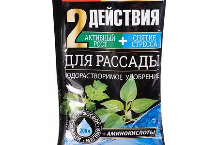 Удобрение водорастворимое для рассады, BONA FORTE, стимулирует активный рост рассады благодаря сбалансированному составу. Предназначено для выращивания рассады овощных, плодовых, ягодных, цветочных и декоративных культур. Содержит азот, фосфор, калий, магний, 7 микроэлементов в хелатной форме. Обогащено аминокислотами. Экономичный расход: пакетика хватит на 200 л воды. Перед использованием ознакомьтесь с инструкцией и мерами предосторожности на упаковке. Масса нетто: 100 г.