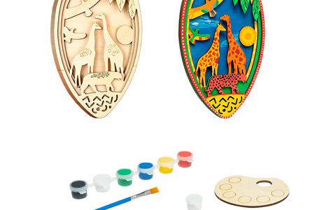 Объёмное панно для раскрашивания станет отличным подарком для ребёнка, который увлекается творчеством. Необходимо раскрасить заготовки и соединить их в объёмную картинку. Готовое панно станет отличным украшением для комнаты или подарком для близких. В наборе: заготовки из дерева, краски (6 цветов), кисть, клей, палитра. Примерный размер готового изделия: 23х15 см. Состав: фанера (береза), клей ПВА, акриловые краски. Для детей от 3 лет. Товар представлен в ассортименте.