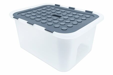 Ящик с крышкой-створками "Bubble Box" подходит для хранения игрушек, одежды и других вещей. Крышка на защёлках выполнена в сером цвете, с рельефными рисунком. Размер: 38х29х19 см. Состав: полипропилен.