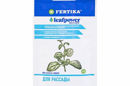 Удобрение комплексное растворимое "Leafpower", FERTIKA, предназначено для подкормки рассады и взрослых растений. Содержит макро- и микроэлементы в сбалансированном соотношении и доступной форме. Улучшает качество плодов и овощей, декоративных культур. Повышает урожайность. Перед использованием внимательно ознакомьтесь со способом применения и мерами безопасности на упаковке. Масса нетто: 15 г.