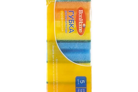 Губка для мытья посуды профильная, BonHome, подходит для всех типов посуды. Оптимальный выбор для повседневного использования. В упаковке 5 штук. Состав: поролон, абразивный материал.