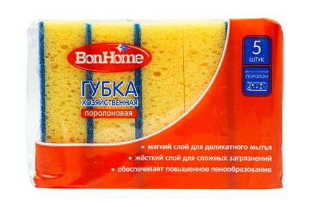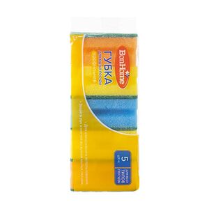Губка хозяйственная поролоновая, BonHome, предназначена для мытья посуды и столовых приборов. Можно использовать для удаления загрязнений с кухонных поверхностей. Хорошо впитывает влагу. В упаковке 5 губок из крупнопористого поролона и абразивного материала. Приблизительный размер губки: 11,5х7,5х3,5 см.