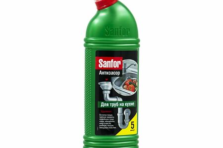 Средство для чистки труб, Sanfor, эффективно устраняет засоры и прочищает кухонные трубы. Густой гель растворяет остатки пищи, жир, чайную заварку и другие загрязнения. Помогает устранить неприятные запахи. Инструкция по применению указана на упаковке. Масса нетто: 1000 г.