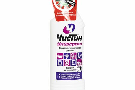 Чистящее средство "Универсал", Чистин, поможет поддерживать чистоту во всём доме! Прекрасно удаляет стойкие загрязнения, а также эффективно борется с микробами и грибком. Устраняет неприятные запахи. Содержит активный хлор. Подходит для обработки ванн, душевых кабин, унитазов, керамической плитки и других поверхностей. Можно использовать для профилактики засоров. Способы применения и меры предосторожности подробно указаны на упаковке. Бутылка дополнена удобным носиком с крышкой. Масса нетто: 750 г.