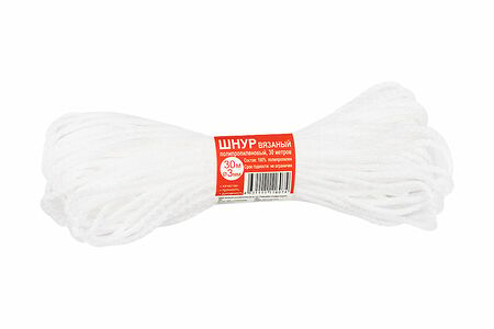 Шнур вязаный полипропиленовый станет полезным приобретением для дома и дачи. Можно использовать в качестве бельевой верёвки, для подвязки растений и других хозяйственных нужд. Цвет: белый. Длина: 30 метров. Диаметр: 3 мм.