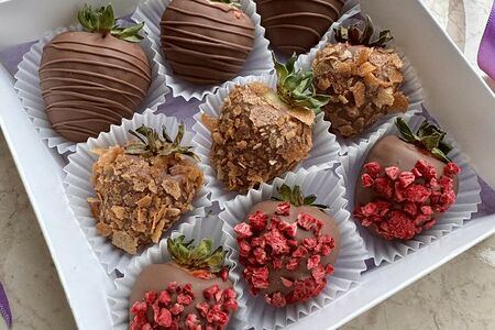 Мини набор клубники в бельгийском молочном шоколаде. В набор входит 9 штучек клубники. Украшается вафельной крошкой, кусочками сублимированной малины и шоколадом. Указаны примерные размеры, чтобы вы могли представить внешний вид и масштаб, но фактически размеры могут немного отличаться.