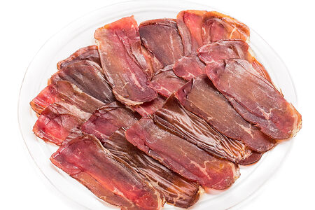 Сведения о составе: говядина мраморная, морская соль, посолочно-нитритная смесь (соль пищевая, фиксатор окраски натрия Е250), тростниковый сахар, перец черный молотый, перец душистый, мускатный орех, корица Условия хранения: 2 - 6 °CСрок годности в днях: 6 месяцев, после вскрытия 48 часовСтрана изготовления: Московская областьСведения об упаковке: Пакет