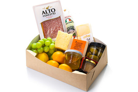 Сведения о составе: сыр швейцарский кусковой, сыр Пармезан, оливки Халкидики, паштет из утиной печени, салями с трюфелем, колбаса Фуэт классическая, сыр Камамбер тройные сливки, мёд, мандарины, виноград. Возможны замены.Страна изготовления: ООО "ФУД ЛАБ", Россия, Московская областьСведения об упаковке: Пакет