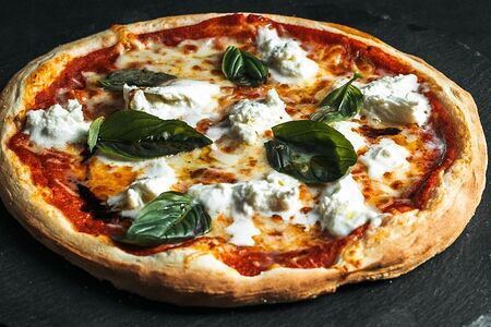 Хрустящее тесто, соус томатный, сыр моцарелла, базилик зеленый (28 см) Продавец: ИП Ващенко Валентин Валерьевич (504307884590) Московская обл, г Серпухов, ул Селецкая, д. 74 322508100460033