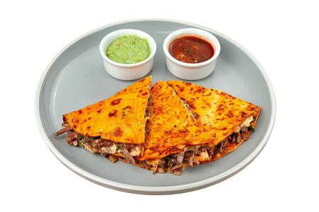 Тортилья пшеничная, сочная тушёная говядина, сыр голландский, сыр моцарелла. Подаётся соусом гуакамоле и сметаной. Продавец: ИП Юлчиев Амур Бахрамович (751303638660) 674600, Россия, Забайкальский край, Борзинский р-н, Борзя г., ул. Карла Маркса, д. 98, кв. 16 318753600033744