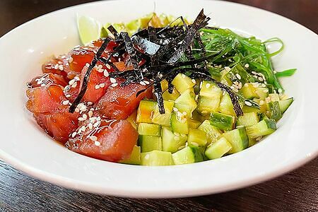 Рис, тунец, авокадо, огурец, салат чука, нори, кунжут, соус манго, соус терияки. Продавец: ИП Вайсман Давид Романович (772795187011) 117638, г. Москва, ул. Сивашская, д. 6, к. 1, кв. 222 319774600210423