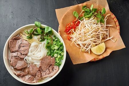 Говяжий бульон, говядина, рисовая лапша, кинза, лук красный, лук зеленый, ростки сои, лайм, соус Продавец: ИП Ле Тхи Тоан (370208260699) 109386, г. Москва, ул. Краснодарская, д. 48, кв.41 318774600628684