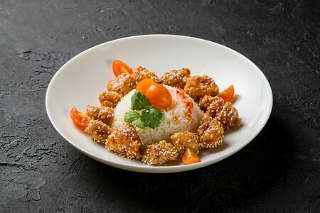 Куриное филе, рис жасмин, кунжут, томаты черри, соус тайский чили Продавец: ИП Вайсман Давид Романович (772795187011) 117638, г. Москва, ул. Сивашская, д. 6, к. 1, кв. 222 319774600210423