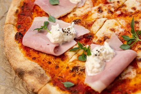 Хрустящее тесто, соус томатный, сыр моцарелла, сыр пармезан, прошутто котто, сыр страчателла, базилик зеленый (28 см) Продавец: ИП Ващенко Валентин Валерьевич (504307884590) Московская обл, г Серпухов, ул Селецкая, д. 74 322508100460033
