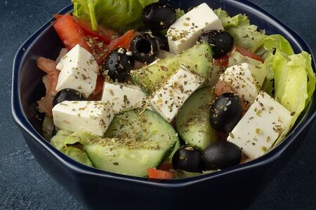 Огурцы, помидоры, лук, маслины, сыр фета, лист салата, соль, перец Продавец: ИП ВЕНГЕРОВ ВЛАДИМИР ЮРЬЕВИЧ (771003844142) УЛИЦА БОЛЬШАЯ ГРУЗИНСКАЯ, Д. 56, КВ./ОФ. 19, Г. МОСКВА 321774600800977