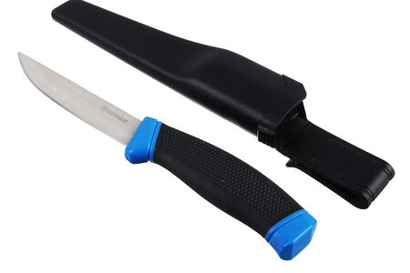 Компактный и функциональный нож из прочной нержавеющей стали. Пригодится на охоте, рыбалке, в походе или на даче. Удобная прорезиненная рукоятка, удобно лежит в руке, в комплекте прилагается чехол (ножны). Эффективен на рыбалке и в повседневном бытовом использовании. Активно пользуется спросом у рыбаков, туристов и автолюбителей.
