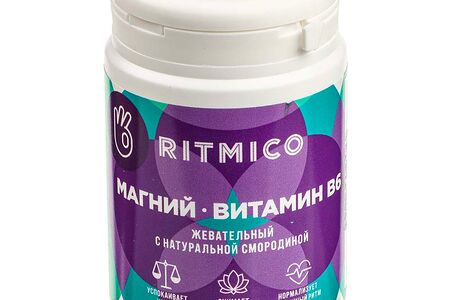 Магний, витамин В6 жевательный с натуральной смородиной "Ритмико", 50 г доставка