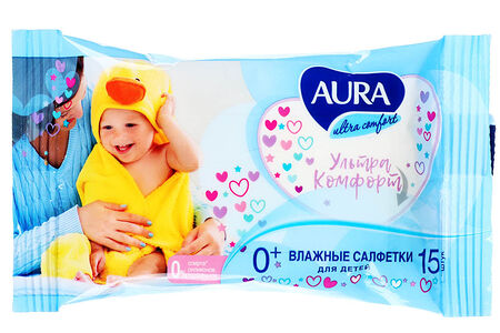 Салфетки влажные для детей Aura Ultra comfort, 15 шт доставка